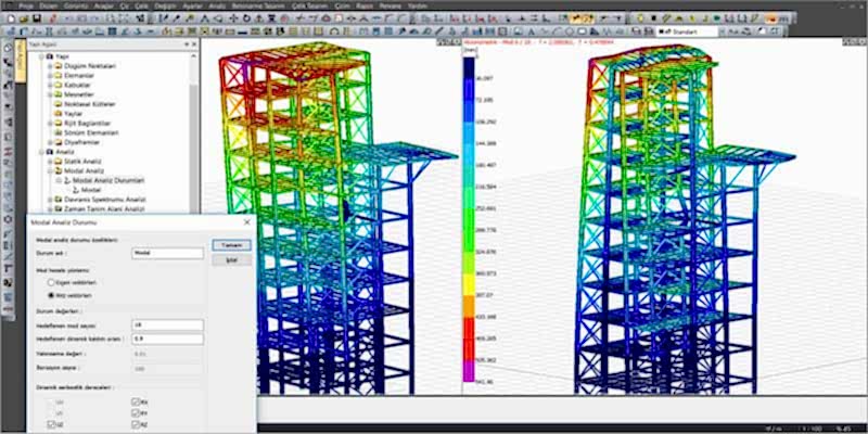 Öz vektör mod analizi, yapının davranışını anlamak için kullanılabilecek yapının doğal titreşim modlarını bulur.