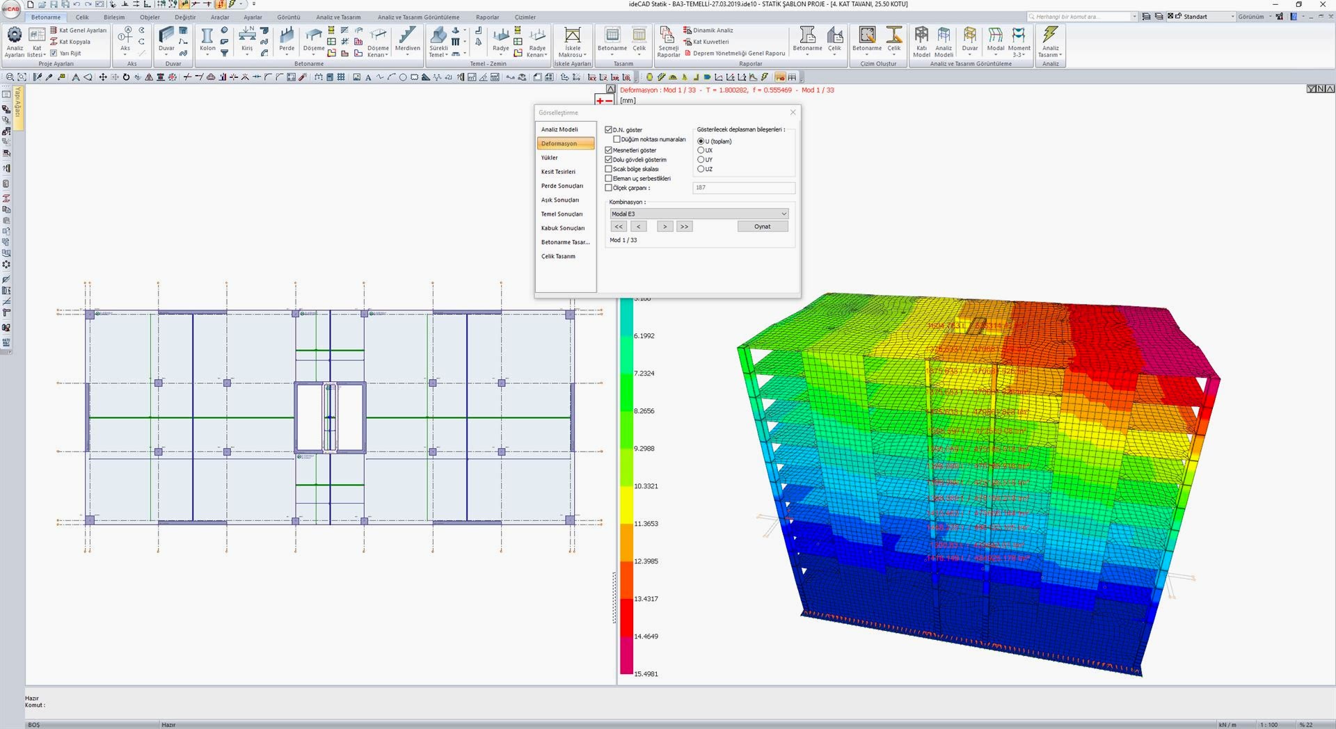 Sismik Analiz ve Tasarım, TBDY ve Çeşitli Uluslararası yönetmelikler kapsamında ideCAD Statik ile Otomatik olarak yapılır.